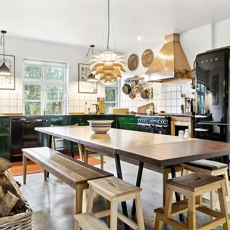 La villa Nostalgic Atmosphere At The Old Parsonage On Lyo comprend une cuisine équipée équipée d'un réfrigérateur et de la vaisselle pour la préparation des repas. Vous trouverez Cafe Lyo gamle skole à 5 minutes de marche.